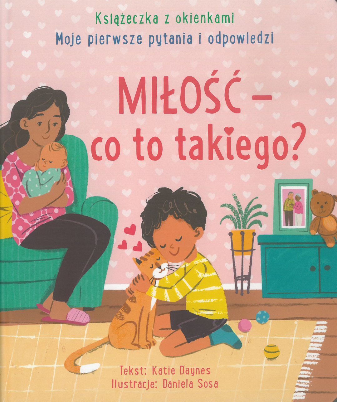 Miłość - co to takiego? / tekst: Katie Daynes ; ilustracje: Daniela Sosa. - Ożarów Mazowiecki : Wydawnictwo Olesiejuk, 2025. - [12] stron : ilustracje ; 20 cm.