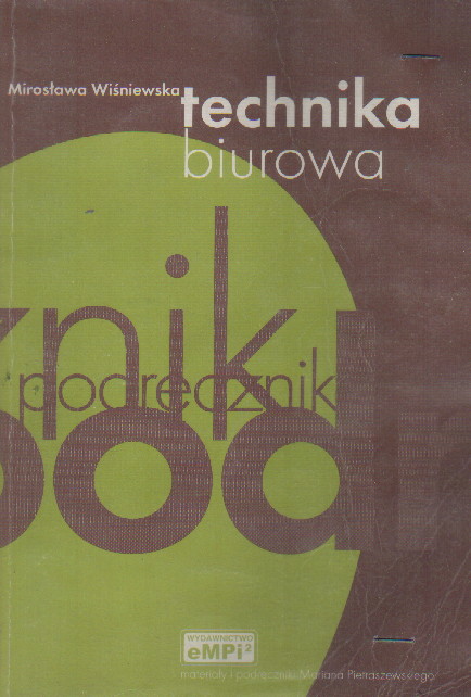 Technika biurowa : podręcznik / Mirosława Wiśniewska. - Wydanie 7. - Poznań : Oficyna Edukacyjna Wydawnictwa eMPi2, 1999. - 153, [1] strona : ilustracje ; 24 cm.